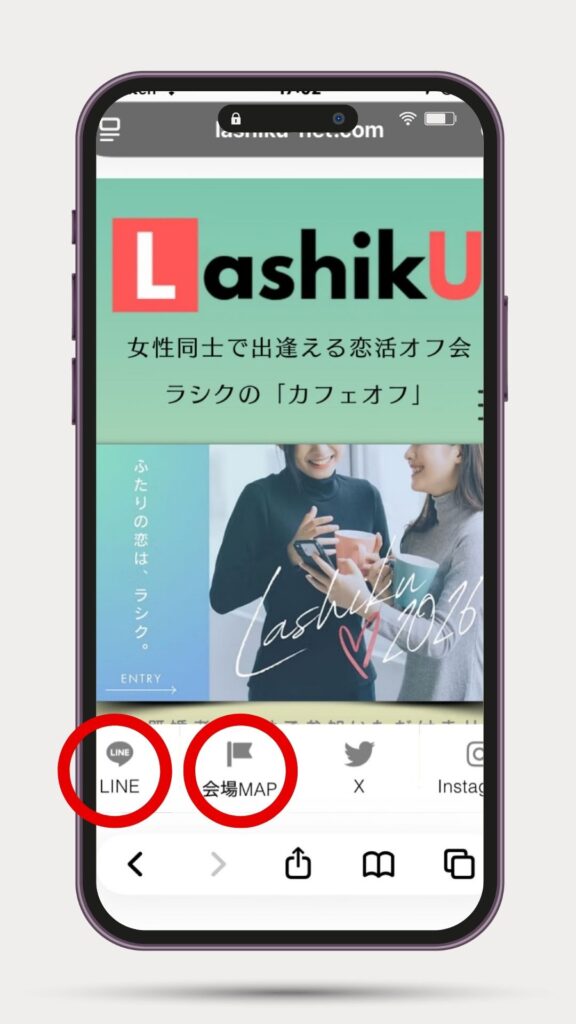 公式HP下部にある『LINE』をタップすると